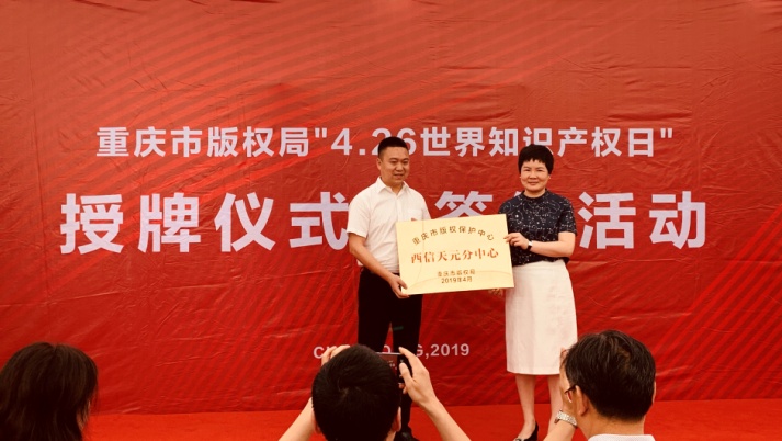 由中共重庆市委宣传部主办、中共渝中区委宣传部承办、重庆市出版保护中心协办的第十九个“世界知识产权日”于2019年4月26日在渝中区解放碑隆重举行。其间,由中共重庆市委宣传部吴部长为公司授牌,重庆市版权保护中心西信天元分中心正式成立。分中心成立标志着采用互联网大数据时代版权工作创新模式的建立,将更方便为专业内容创作者提供版权登记服务。